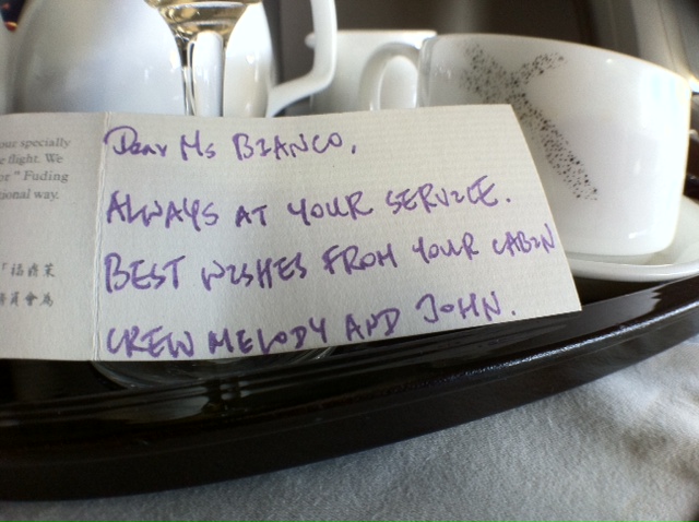 Truth be told, I was a tiny bit nervous going in. Would it be the same wonderful experience the second time around? Would Cathay play it cool because I put my heart on my sleeve? Was I going to be another notch in the passenger log?!? And then I saw this and I knew we were good.